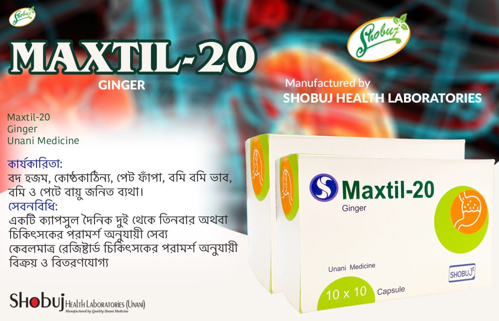Maxtil-20 সংক্ষিপ্ত বিবরণ: কার্যকারিতা: বদ হজম, কোষ্ঠকাঠিন্য, পেট ফাঁপা, বমি বমি ভাব, বমি ও পেটে বায়ু জনিত ব্যথা।সেবনবিধি: একটি ক্যাপসুল দৈনিক দুই থেকে তিনবার অথবা চিকিৎসকের পরামর্শ অনুযায়ী সেব্যকেবলমাত্র রেজিষ্টার্ড চিকিৎসকের পরামর্শ অনুযায়ী বিক্রয় ও বিতরণযোগ্য
